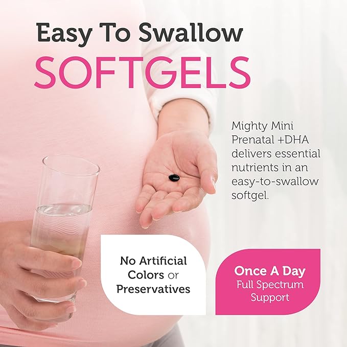 - DAILY PRENATAL - Receive 19 essential prenatal vitamins and minerals in one small easy to swallow softgel pill. The full spectrum nutrients plus DHA supports fetal development and supports Mom's health and wellness too.