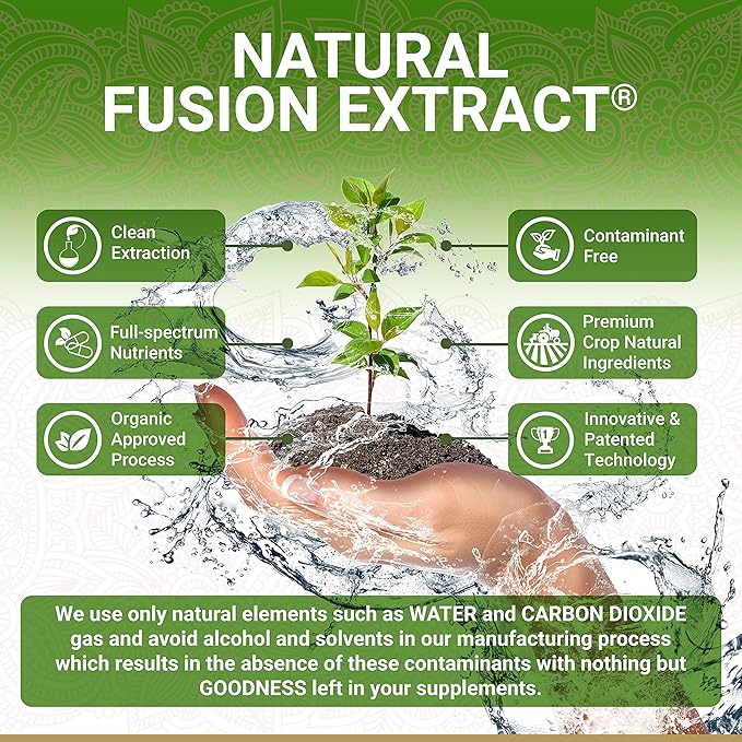 - AVOID HARSH SOLVENTS & ALCOHOL RESIDUES: Stop poisoning your body with harsh solvents & alcohol residues from regular supplements by using our pioneering and patented Natural Fusion Extract technology. We extract all the plants active components and nutrients in the most natural way using only water and clean carbon dioxide gas leaving you with a holistic supplement that is extremely clean & concentrated. Our clean label supplements say it all with no nasty surprises added into the ingredients.
