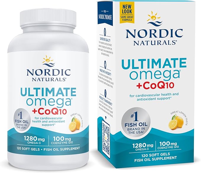 Nordic Naturals Ultimate Omega + CoQ10, Lemon - 120 Soft Gels - 1280 mg Omega-3 + 100 mg CoQ10 - Heart Health, Cellular Energy, Antioxidant Support - Non-GMO - 60 Servings