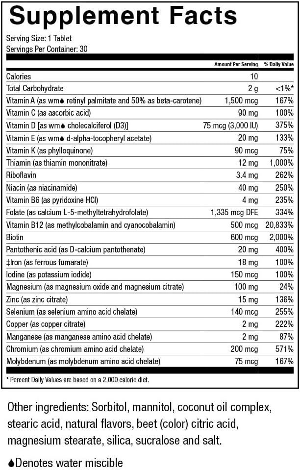 - Optimized Nutrient Absorption: Utilizes water-miscible forms of vitamins A, D, and E, which enhance absorption without the need for fat intake, and chelated minerals to improve absorption in a low-acidic environment that is common in weight loss surgery patients