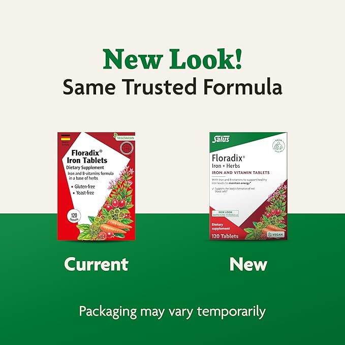 Floradix by Salus Iron Tablets - Energy Support Supplement for Men & Women - Natural Iron Supplement with B Vitamins & Vitamin C - Non-GMO, Vegetarian & Lactose-Free - 120 Tablets