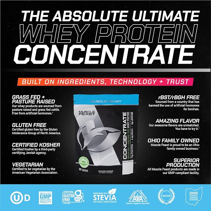 Muscle Feast Grass-Fed Whey Protein Concentrate Powder, All Natural Hormone Free Pasture Raised, Unflavored, 2lb