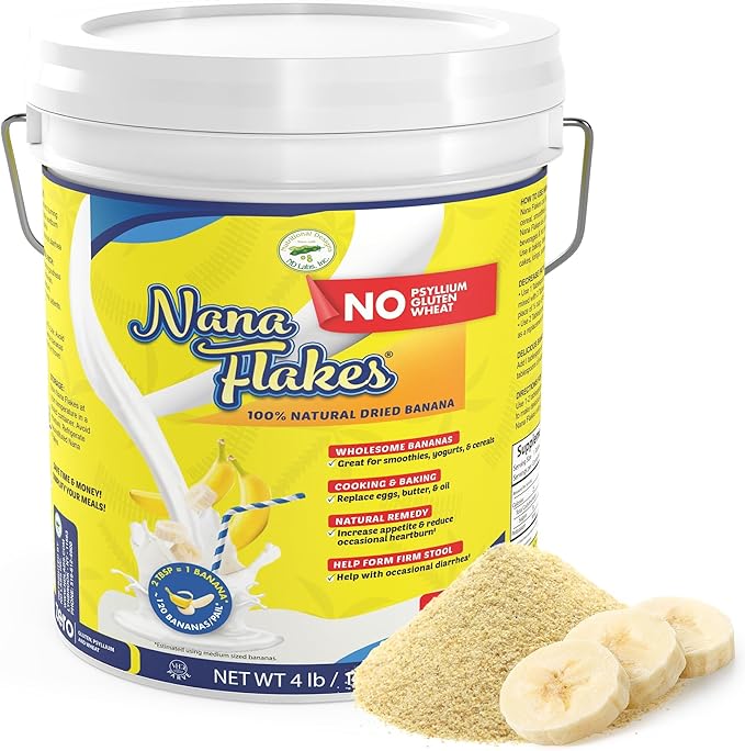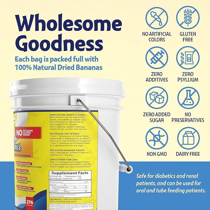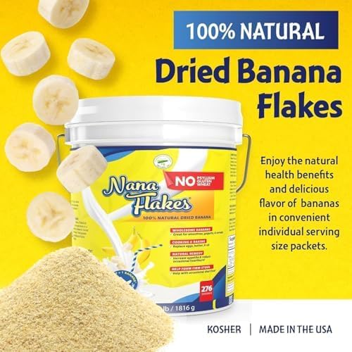Nana Flakes 100% Pure Banana Flakes Medical Food Powder - Decrease Fat Intake & Natural Remedy for Diarrhea & Heart Burn - Great Source of Protein & Fiber (Banana, Four Pound Tub)