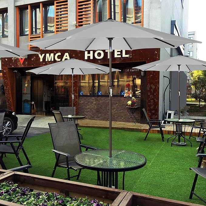 - MODERN & WIDELY APPLICABLE -- Blissun 9 feet patio umbrella with elegant design, is a perfect and essential for summer or sunny days to shade sunshine, apply to the yard, beach, square, garden and patio shops like cafe, restaurant, swimming pool.