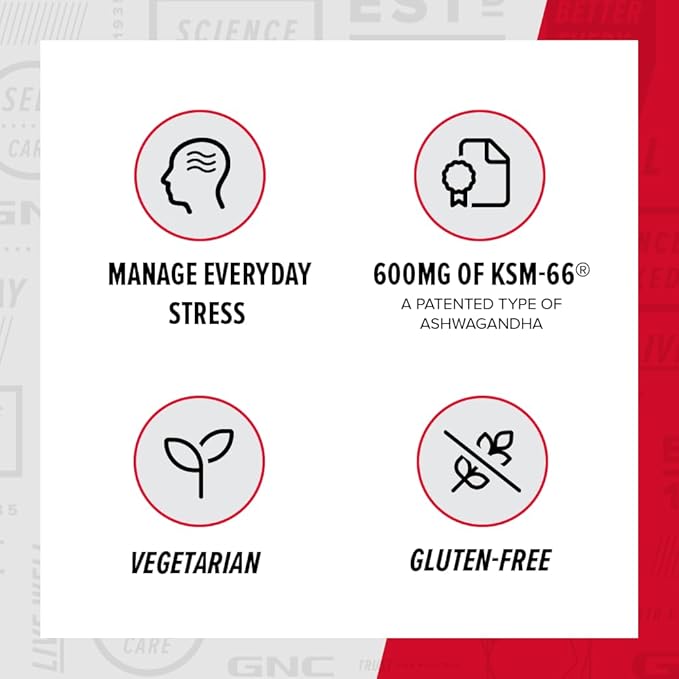 GNC Herbal Plus Ashwagandha 600mg, Stress Relief Support, 60 Capsules