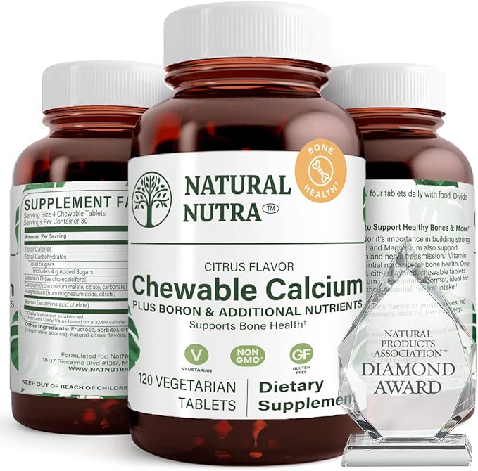 Natural Nutra Chewable Calcium Supplement for Bone Strength, Promotes Muscle Health, Maintain Teeth, Support Nerve Health, and Cardiovascular Health, 120 Tablets