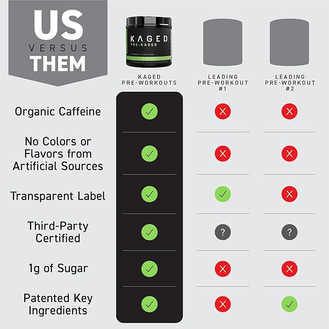 - The industry largest, most fully dosed scoop: With max dose ingredients, and a massive 32g per serving, just one scoop does it all. Kaged is a health-forward brand, so like all our products, PRE-KAGED has been 3rd party tested, screened for banned-substances, and our ingredient profiles are transparent. So, even the most meticulous athletes can see exactly what they’re getting. There’s a reason it’s one of the highest-rated & most-awarded pre-workout supplements available.