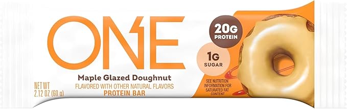 - MAPLE GLAZED DOUGHNUT PROTEIN: Enjoy a protein packed ONE maple glazed doughnut flavored bar for breakfast or lunch or bring it with you to the office or gym, golf course, or for a pre- or post-workout snack