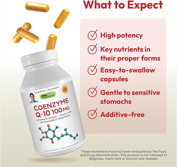 ANDREW LESSMAN Coenzyme Q-10 100 mg 60 Capsules – Essential for Energy Production and Optimum Key Organ Function, Anti-Oxidant Support, Depleted by Aging, Plus B-Complex. Easy to Swallow Capsules