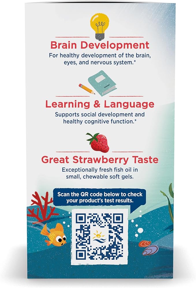 Nordic Naturals Children’s DHA, Strawberry - 180 Mini Chewable Soft Gels for Kids - 250 mg Omega-3 with EPA & DHA - Brain Development & Function - Non-GMO - 45 Servings