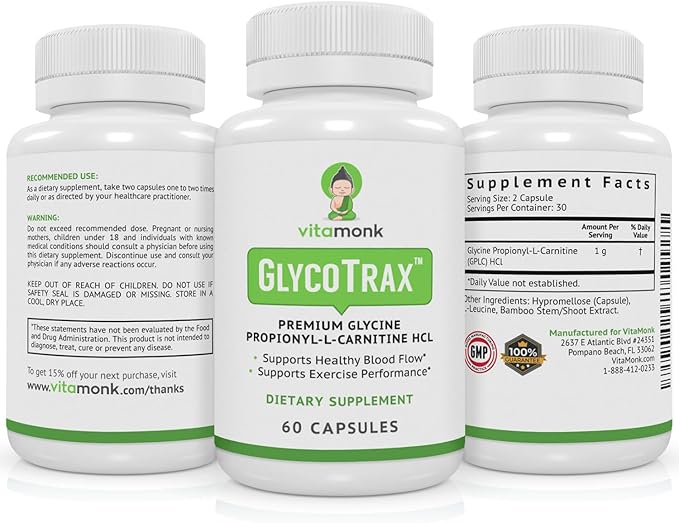 - No artificial fillers - Glycotrax is a premium version of Glycine Propionyl-L-Carnitine ( GPLC) used to promote increased blood circulation, nitric oxide release, and heart health. This bottle gives you 60 capsules with no artificial fillers whatsoever. Optimal, safe results.