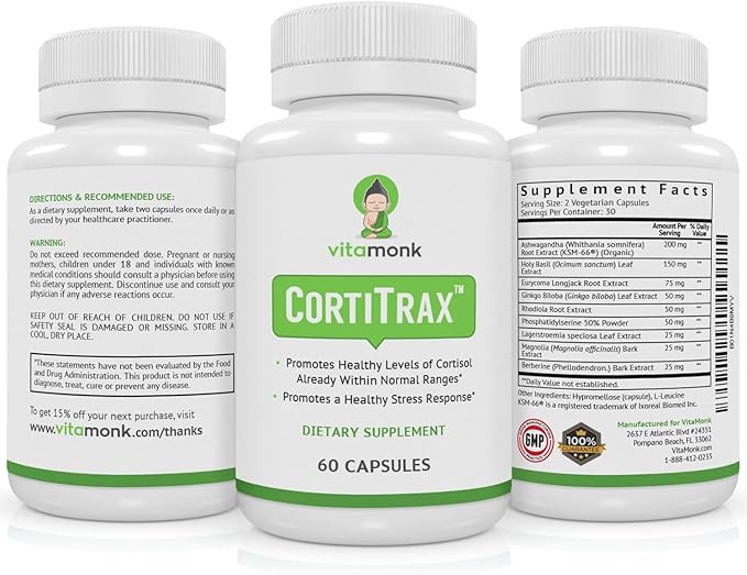 VitaMonk CortiTrax Natural Cortisol Blocker - Doctor Formulated Cortisol Manager, Cortisol Support & Cortisol Reducer (Already Within Normal Ranges)- 60 Capsule Cortisol Supplement
