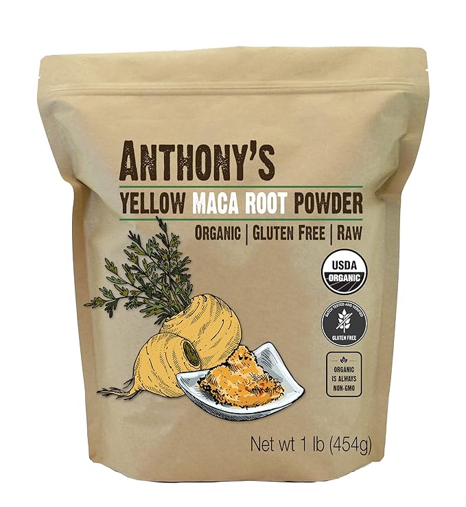 Anthony’s Organic Yellow Maca Root Powder, 1 lb, Raw, Gluten Free, Non GMO, Non Gelatinized