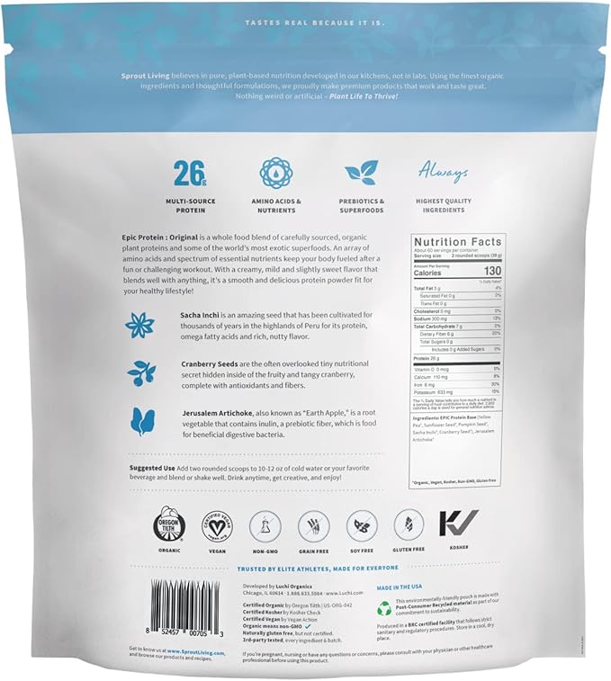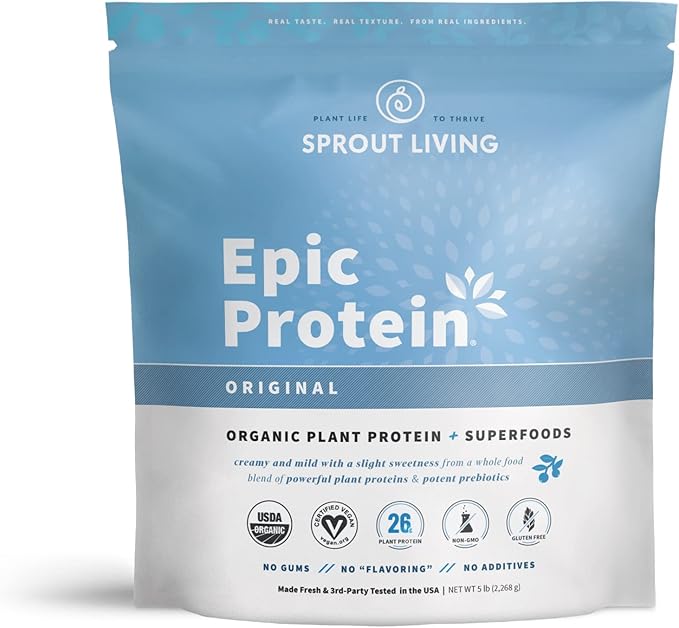 Sprout Living Plant Based Protein & Superfoods Powder, Original, Unflavored | Organic Protein Powder, Vegan, Non Dairy, Non-GMO, Gluten Free, Sugar Free, Perfect Keto Drink Mix (5 lb)