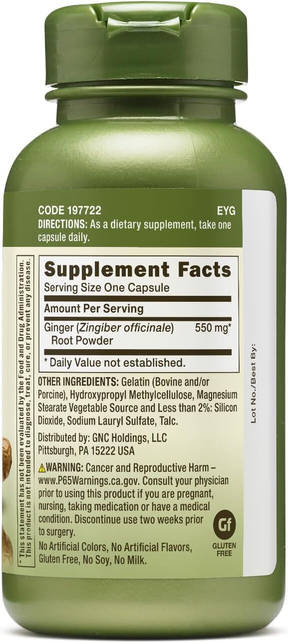 GNC Herbal Plus Ginger Root 550mg, 100 Capsules, Supports Digestive Health