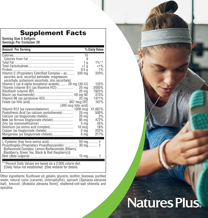 NaturesPlus Hema-Plex Iron - 60 Fast-Acting Softgels - 85 mg Iron + Vitamin C & Bioflavonoids for Healthy Red Blood Cells - Vegan, Gluten Free - 20 Servings