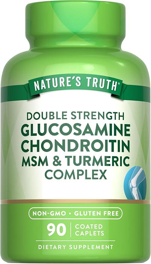 Nature's Truth Glucosamine Chondroitin MSM Complex | 90 Caplets | with Turmeric | Double Strength | Non-GMO & Gluten Free Supplement