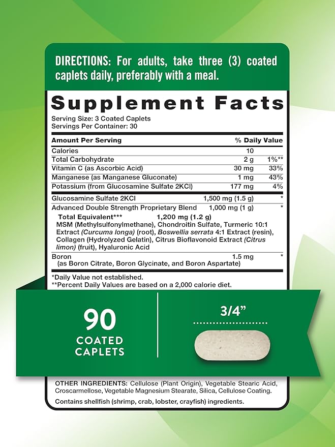 - Premium Complex: A powerful blend of Glucosamine, MSM, Chondroitin, and more in coated caplets