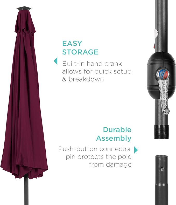 Best Choice Products 10ft Solar Polyester LED Lighted Patio Umbrella w/Tilt Adjustment and UV-Resistant Fabric - Burgundy