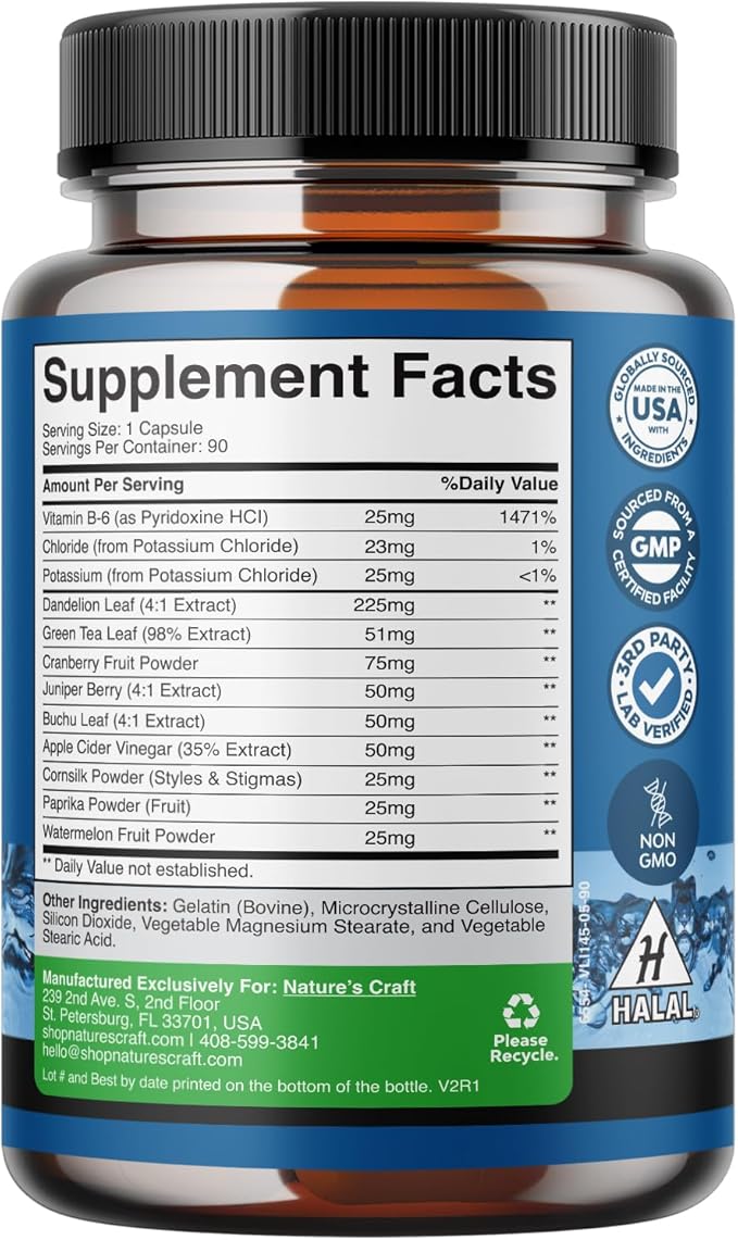 - Potent Herbal Formula - Our diuretic pills are formulated using a specialized blend of vitamins minerals and botanicals including Vitamin B6 Buchu leaf Paprika Watermelon Cornsilk Juniper and more
