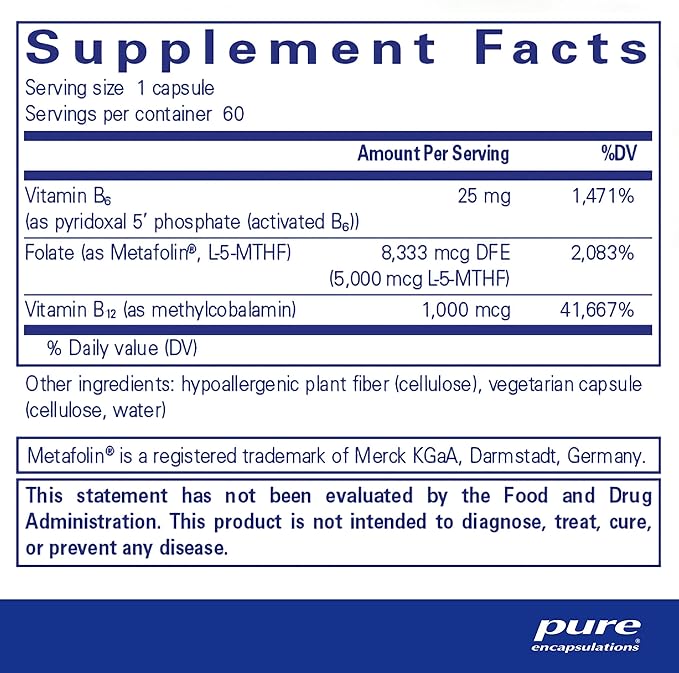 Pure Encapsulations - Folate 5,000 Plus - Activated Folate, Vitamin B12 and B6 Combination - 60 Capsules