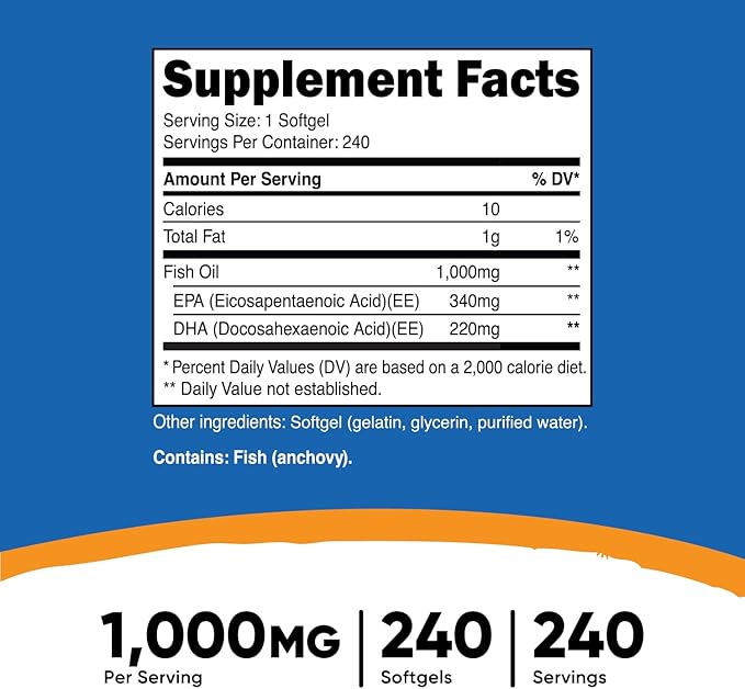 - You only need to take 1 Softgel to get 1000mg of Nutricost Fish Oil.