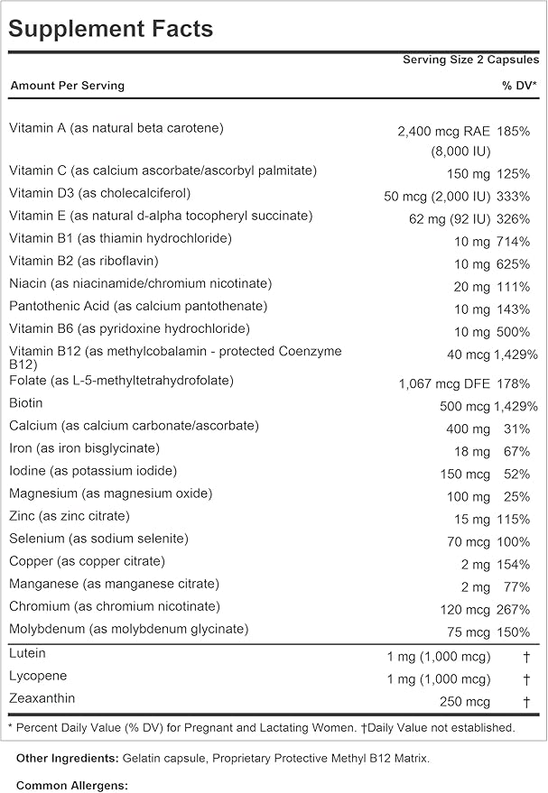 - PRENATAL WITH FOLATE, SUPERIOR Pure BIO-ACTIVE INGREDIENTS – We set out to create the best prenatal vitamins for women, with Vitamin A, Vitamin C, Vitamin D, Vitamin E, B-Complex Vitamins, Calcium, Iron, Iodine, Magnesium, Zinc, Selenium, Copper, Manganese, Chromium, Molybdenum, Lutein, Lycopene and Zeaxanthin. Our pre natal multivitamin for women is dairy-free, gluten-free, & contains NO soy, yeast, wheat, sodium, salt, sugar, fat, color, preservative, common allergens or additives