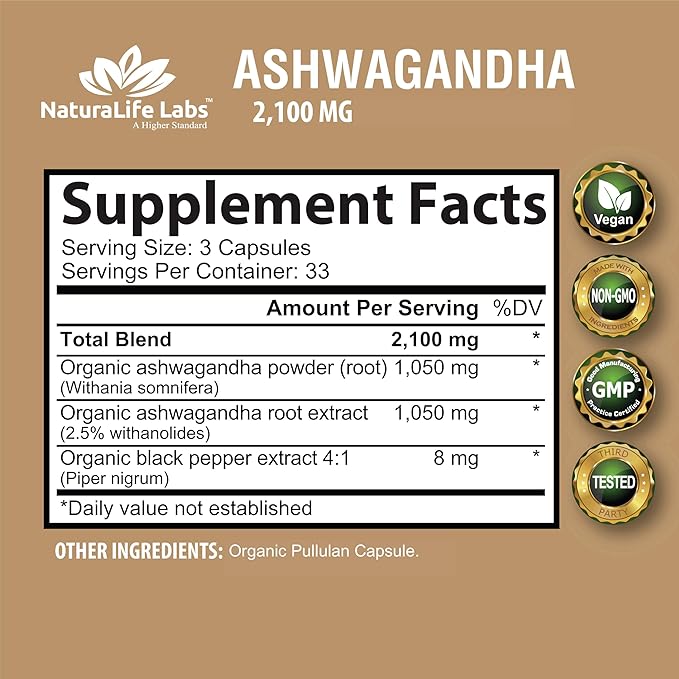 - ✔️POTENCY Unveiling the power of Ashwagandha, our blend brings you 2100 mg per serving, a perfect fusion of organic powder and potent extract