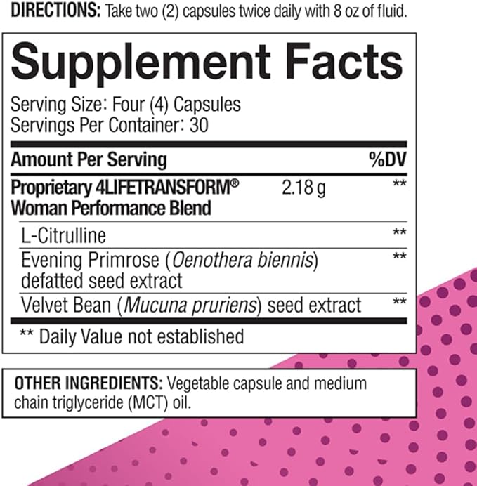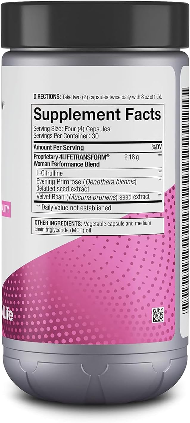 4LifeTransform Woman – Cellular Aging & Wellness Supplement for Women - Velvet Bean & Evening Primrose Extracts - Supports Healthy Skin & Nitric Oxide Production - 120 Capsules