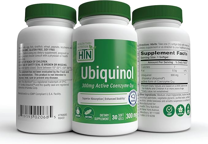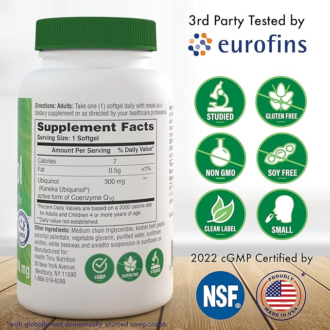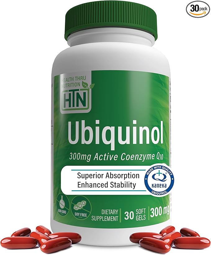 Health Thru Nutrition Ubiquinol 300mg 30 Softgels as Kaneka QH Reduced CoQ-10 | Stabilized - 3rd Party Tested | Enhanced Bioavailability | Cardiovascular & Mitochondria Function Support | Non-GMO