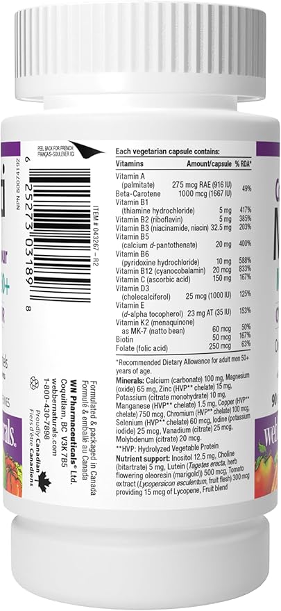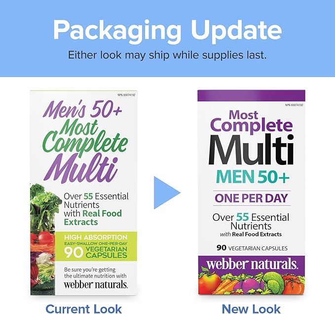 Webber Naturals Men's 50+ Most Complete Multi, 90 Vegetarian Capsules