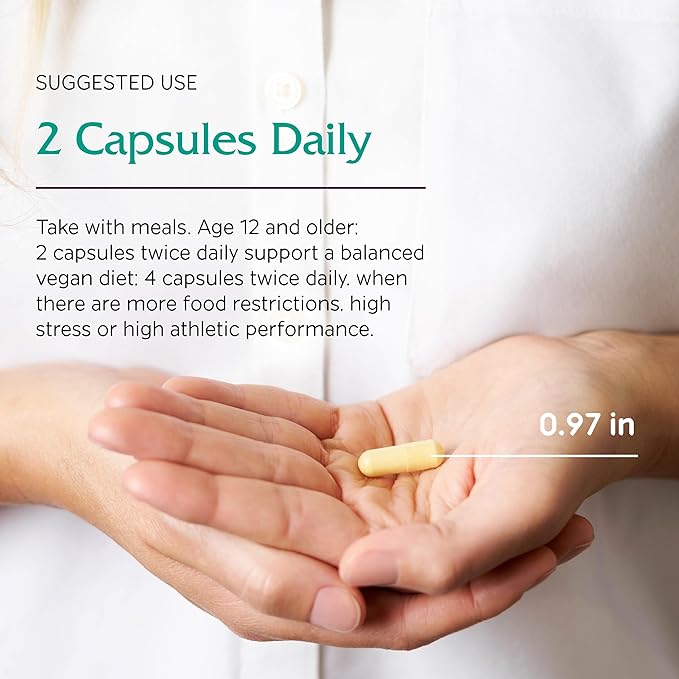 - Daily Multivitamin for Adults: People age 12 and older should take 2 capsules twice daily with a meal to support a balanced vegan diet; take 4 capsules twice daily, when there are more food restrictions, high stress or high athletic performance*