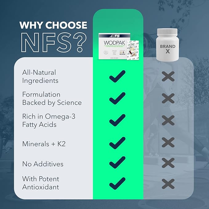 - Essential Vitamin K2: WODPAK includes Vitamin K2, a crucial nutrient often absent from standard multivitamin formulations, promoting overall health and wellness. Omega 3 Supplementation: Recognizing the benefits of Omega 3's, WODPAK incorporates high-potency fish oil to support heart health, cognitive function, and overall well-being.