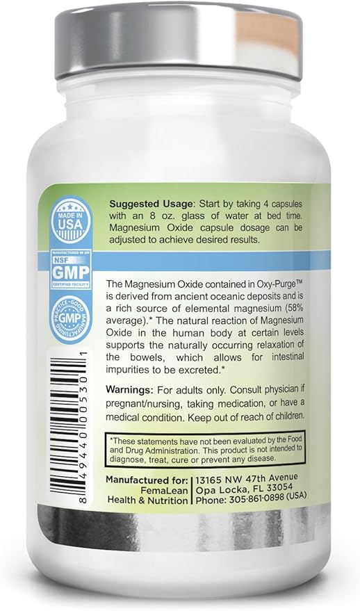 Oxy-Purge 750 mg 60 Vcaps - Natural Magnesium Oxide Oxygen Based Colon Cleanse Gentle Laxative Supports Healthy Digestive Tract Regularity