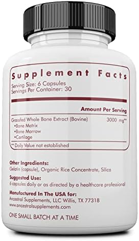 • NEW ZEALAND AND AUSTRALIAN GRASS FED BEEF: Made in small batches in the USA without GMOs, fillers, or flow agents and third party verified for purity, Ancestral Supplements' bone marrow capsules are sourced from 100% grass-fed cows, pasture raised without hormones in green fields.
