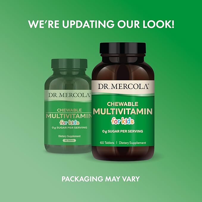 Dr. Mercola Chewable Multivitamin for Kids, 30 Servings (60 Tablets), 0g Sugar Per Serving, Natural Orange Flavor, Dietary Supplement, Supports Overall Health, Non-GMO