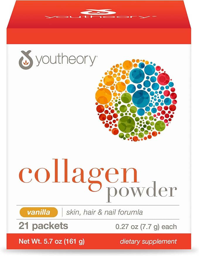 - Collagen Supplement: Youtheory Collagen Powder helps replenish this vital protein to support skin, hair, nails, tendons, and ligaments*