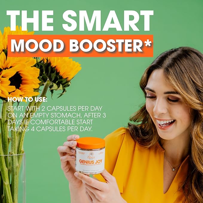 - Amp Up the Joy in Your Life*: Genius Joy by the Genius Brand is a natural mood-boosting supplement formulated with high-quality ingredients including SAMe, Panax Ginseng, and L-Theanine.* Genius Joy is made in the USA. Serving size 4 vegetarian capsules, 25 servings per container.