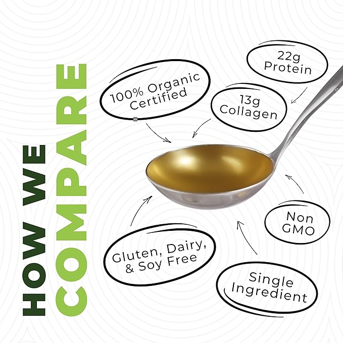16oz Organic Bone Broth Protein Powder From Grass Fed Beef - USDA Certified Organic, Single Ingredient, Rich in Collagen, Glucosamine, No Additives, Perfect for Carnivore, Paleo, and Keto Diets