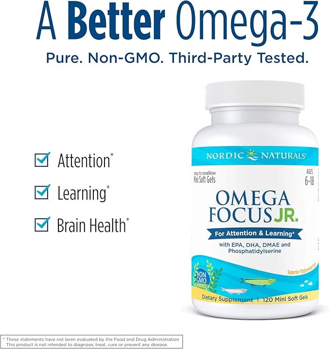 - WHY OMEGA-3S - Omega Focus Jr. is a unique blend of concentrated omega-3s EPA & DHA from fish oil, plus key nutrients DMAE and phosphatidylserine that work together to benefit attention and learning by supporting overall brain health.