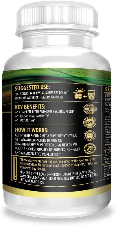 - Actif Teeth & Gums Mega Support - Gummies with Essentials Non-GMO + Oral Probiotics Supplement for Mouth - Plant-Based Calcium, Collagen, Magnesium, Vitamin C, D3, K2, Zinc – Oral Care & Dental Multivitamin Supplements - 90 Gummies