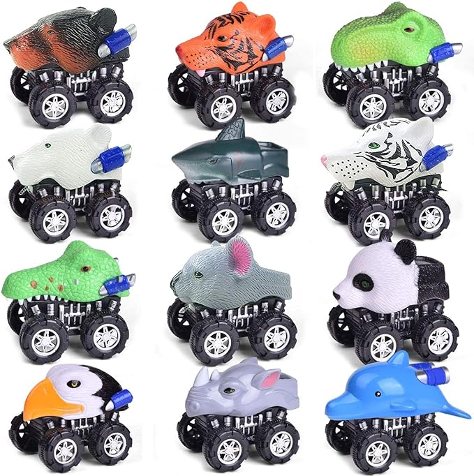- Easy to play: Smash, bash, crash, and race with these animal-themed trucks; made from durable, non-toxic ABS plastic to withstand intense crashes and playtime mayhem