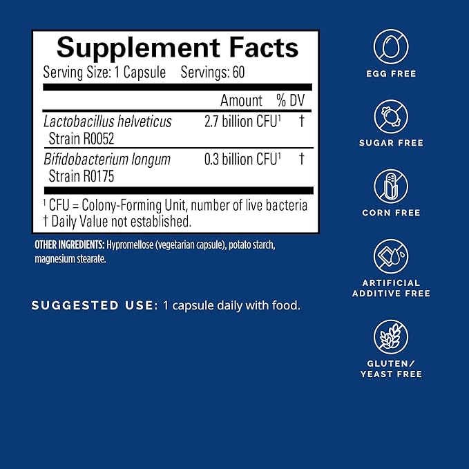 - SUPPORT FOR YOUR GUT & BRAIN - Probiotics Lactobacillus helveticus Strain R0052 and Bifidobacterium longum Strain R0175 have been shown to benefit intestinal function, and your ability to cope with daily challenges