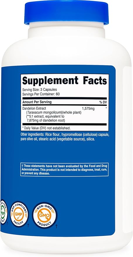 Nutricost Dandelion Extract Capsules 1575mg Per Serving (180 Capsules) - 525mg Per Capsule, Non-GMO, Gluten Free