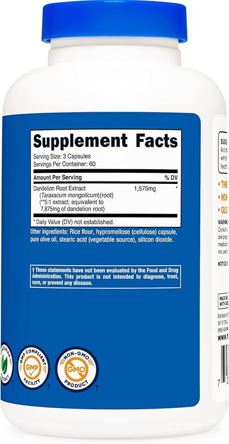 - 525mg of Dandelion Root Extract Per Capsule, 1575mg Serving Per Serving
