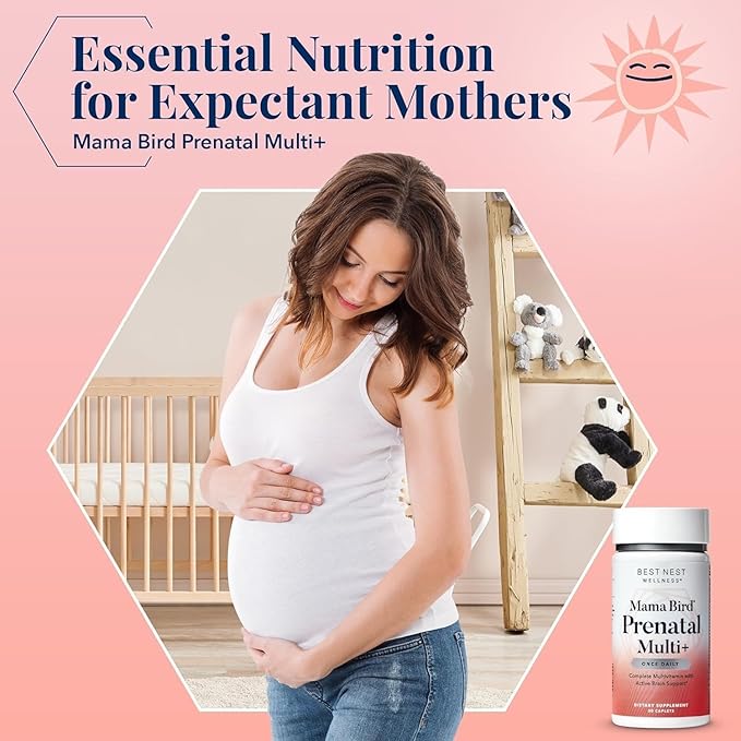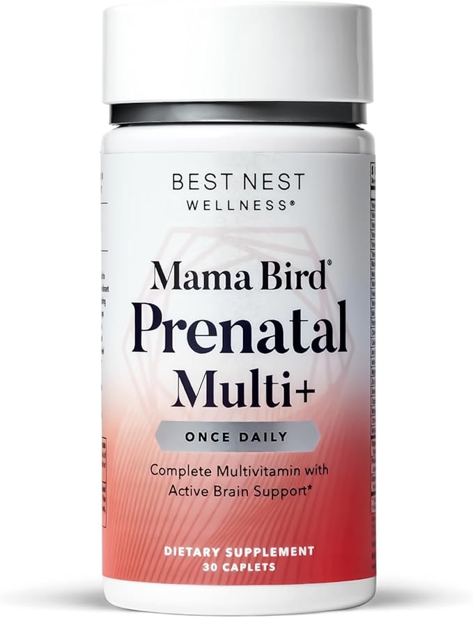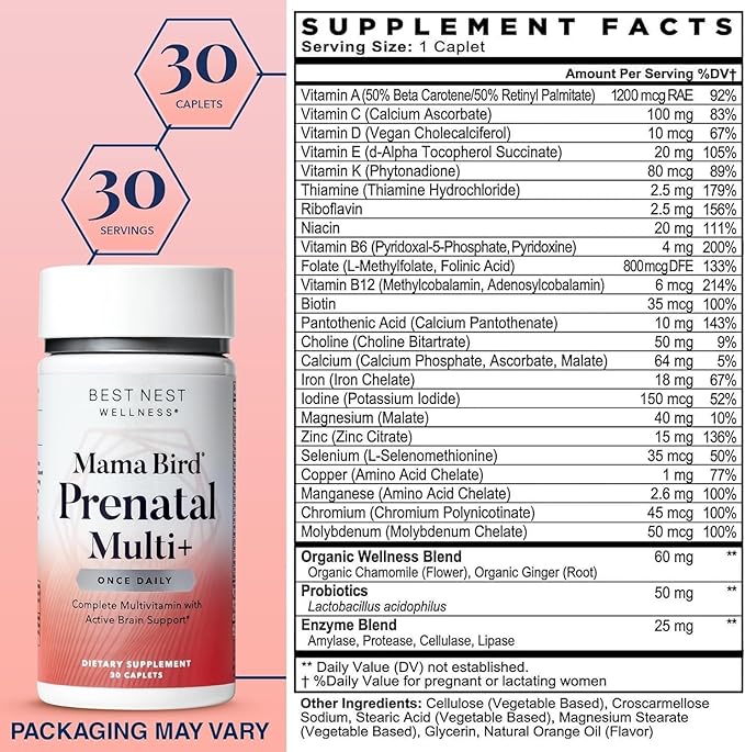 Best Nest Wellness Mama Bird Prenatal Multi Plus - Prenatal Care Supplement Supports Brain & Digestive Health - Vegan Multivitamin with L-Methylfolate, Probiotics & More - 30 Caplets (30 Servings)