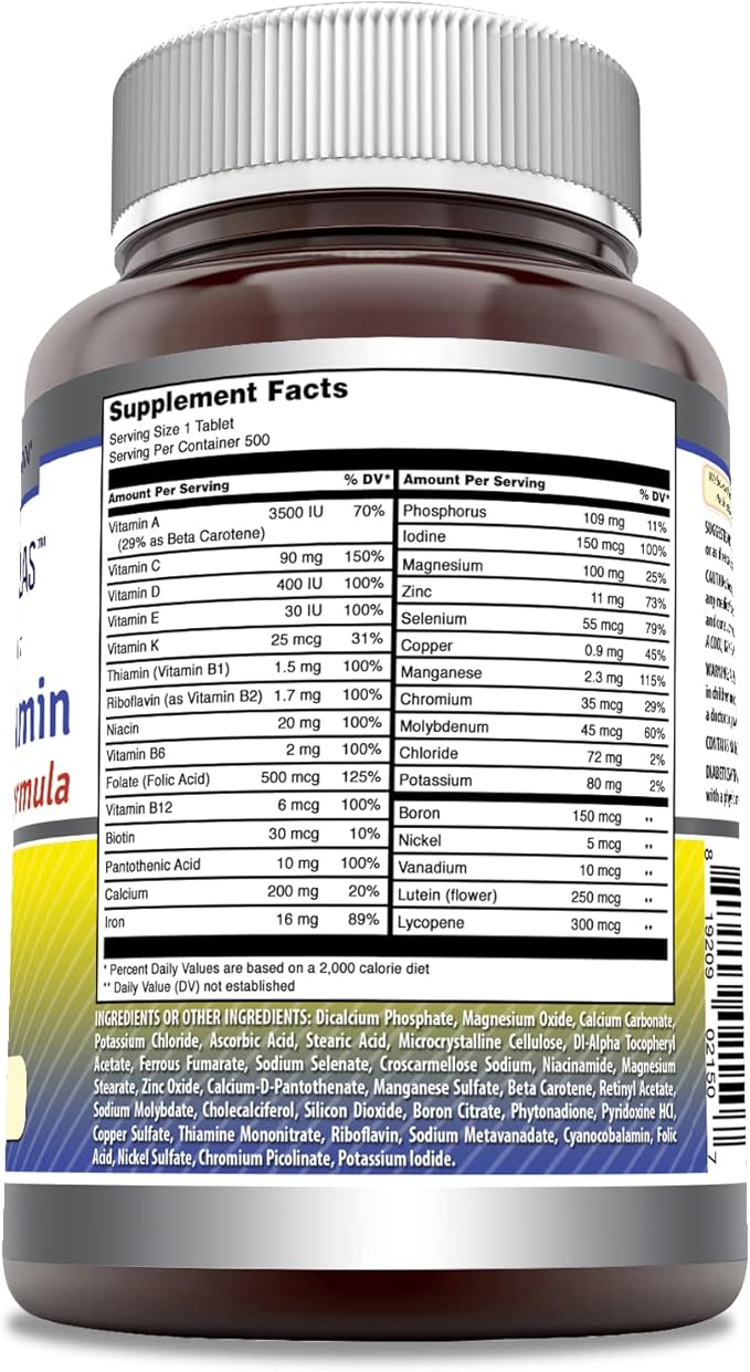 Amazing Formulas Daily Multivitamin 500 Tablets Supplement | Just 1 Tablets A Day | Non-GMO | Gluten Free | Made in USA