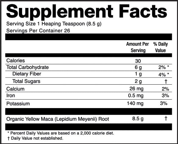 - 226.7 Grams / 8oz of 100% Premium Peruvian Maca Root Powder USDA Organic Certified. Harvested from Junín Peru, around 2700- 4300 meters above sea level far from pollution and any contamination.