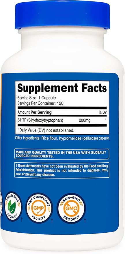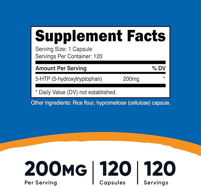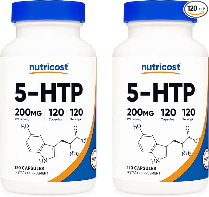 Nutricost 5-HTP 200mg, 120 Vegetarian Capsules (5-Hydroxytryptophan) - Non-GMO & Gluten Free (2 Bottles)
