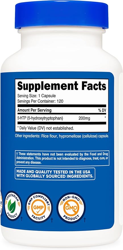 Nutricost 5-HTP 200mg, 120 Vegetarian Capsules (5-Hydroxytryptophan) - Non-GMO & Gluten Free